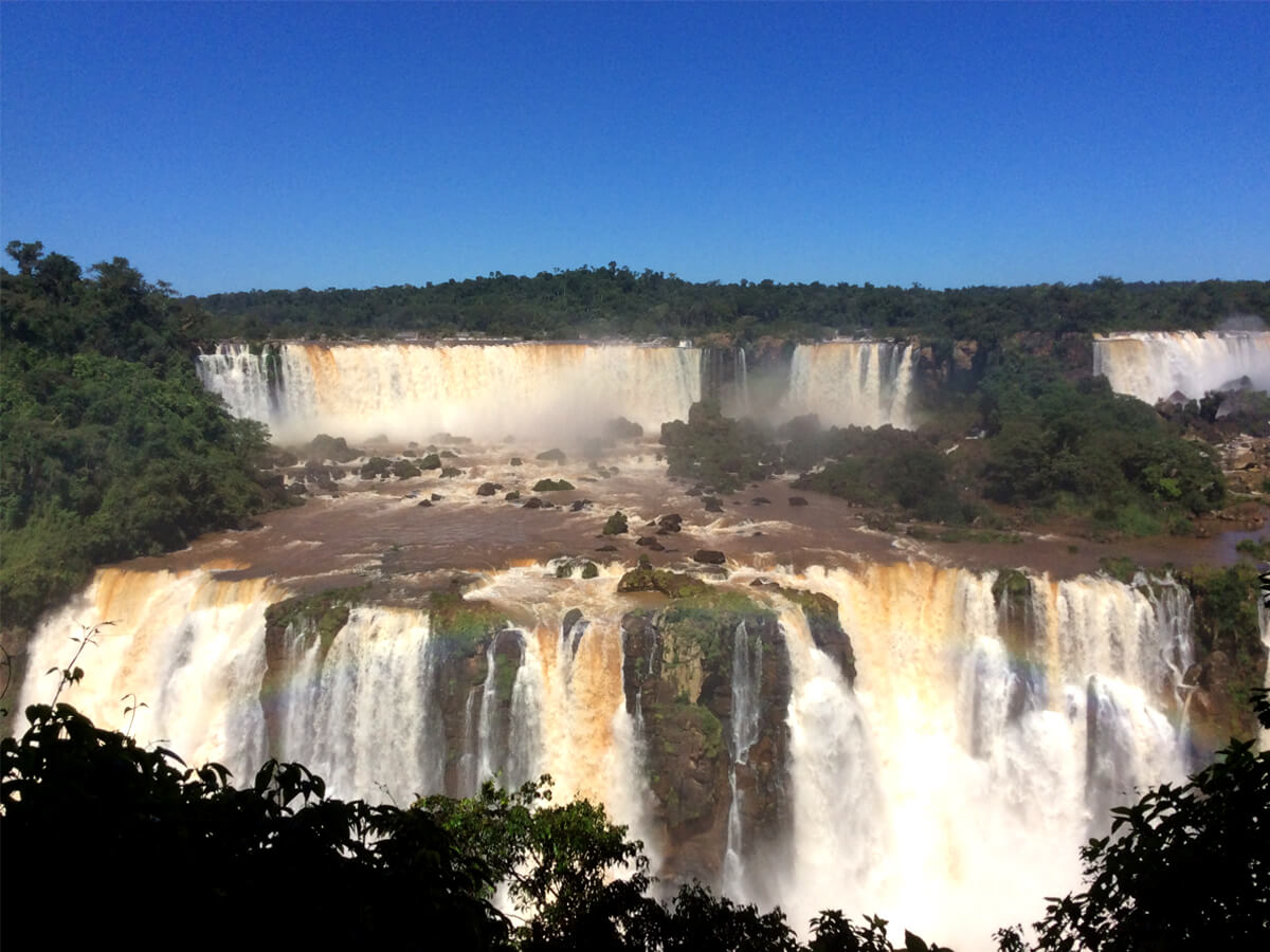 ‘악마의 목구멍’에 도착하니 폭포 밑바닥으로부터 거꾸로 솟구쳐 올라오는 물방울들이 마치 소나기같이 쏟아져 온몸을 적신다. 비옷을 입지 않았더라면 물독에 빠진 생쥐 꼴이 될 뻔하였다. 캐나다의 나이아가라 폭포를 처음 보았을 때 엄청났던 기억이 남아 있건만, 오늘 이과수폭포를 보고나니 나이아가라폭포는 애들 장난이다. 과연 이과수폭포는 지구 반대편에서 찾아온 나의 기대를 저버리지 않았다.
