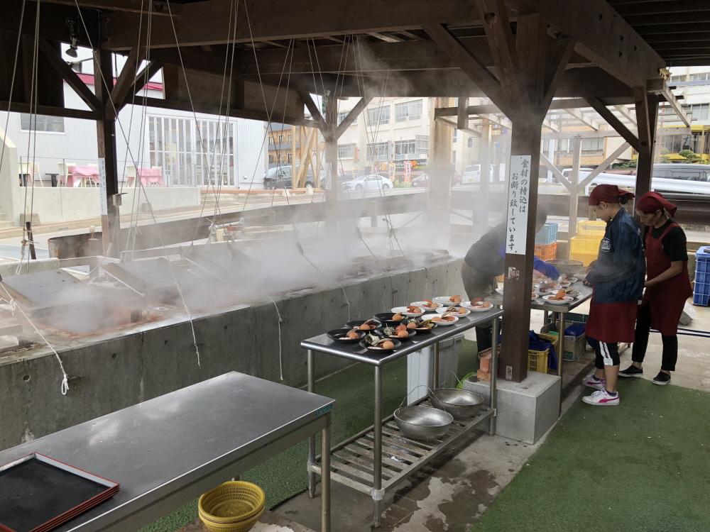 땅에서 나오는 열기로 이렇게 온천물을 데우기로 하지만, 요리에도 이용할 수 있다. 족욕탕에서 조금만 옆으로 시선을 돌려보면, 열기를 이용해 해산물을 쪄서 파는 식당들이 눈에 보인다. 싱싱한 해산물을 뜨거운 열기로 깔끔하게 껴서 요리하니, 출출한 배를 깔끔하게 채우기에 딱 좋다.