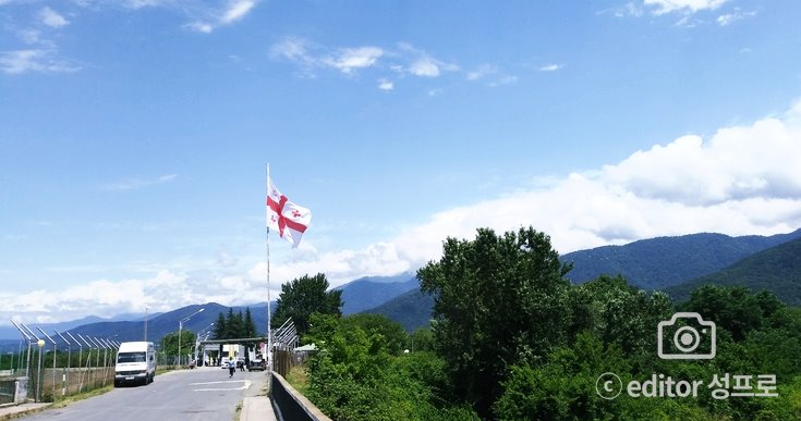 우리나라와는 너무 다른 경제, 풍경에 놀라다 끝나버린 2박3일의 짧은 아제르바이잔 여행을 끝내고 시장에서 산 이국적인 간식을 즐기면서 도착한 조지아. 아제르바이잔 에서 모든 짐을 내렸 답니다. 하나도 빠짐 없이 꼼꼼히 챙겨서 버스에 내린 후 캐리어는 비타투어 에서 준비한 "짐꾼택시" (국경 짐만 날라주는 택시차량이 있습니다.) 에 부탁하고 우리 일행들은 천천히 강바람을 맞으면서 국경으로 이동했어요. 여권 과 아제르바이잔 비자 종이도 꼼꼼히 챙겨주어서 잊지 않고 모두들 안전하게 아제르바이잔 출국 도장을 받았답니다. 그리고 조지아 국기가 보이는 곳으로 약 100미터 조금 걸어가면 입국 사무소 가 나옵니다. 역시 여권 준비! 이곳에서 다정하고 푸근한 "리카" 가이드를 만났답니다. "안뇽하세요~" 라고 인사하는 푸른 갈색눈의 "리카" 코카서스 3국 에 한류열풍이 대단하다더니 한국 가수,연예인 들이 이 어린 학생들에게 한국어를 배우는 꿈을 꾸게 하여 이렇게 우리를 만날 수 있는 기회를 만들어 주었네요.